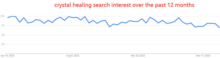 According to Google Trends, over the past 12 months, the search interest in “Crystal healing” has consistently remained between 75 and 100. Particularly, users in the UK, Australia, Ireland, New Zealand, and the USA show significant interest in crystal healing. Additionally, many crystal enthusiasts share related videos on TikTok, with 6.5 million posts tagged with “#Crystalhealing”. This market is huge and profitable.