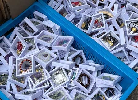 NB! Some stock is sold only by the full carton box, not by the kilogram. Higher-quality accessories are slightly more expensive. For example, the bracelet below is 40 cents/pc.